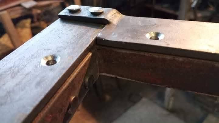 2024 májusában készítettem ezt a kovácsoltvas kemence ajtót. A keretet szögvas és laposvas kombinációjából állítottam össze átlapolt szegecseléssel. Ezt a mára majdnem elfeledett technológiát a műlakatos ipar alkalmazta még a hegesztő berendezések feltalálása előtt. Az ajtó lapját 4mm vastag lemezből készítettem. Az ajtólap kerete és vasalatai 5mm- és laposvasból lettek kovácsolva. Egy Szekszárd környékéről származó bukovinai székely kovács álltal készített szekér vasalatai adták az ihletet. Legalábbis a tulipán minták első egyharmadát, a levél bevésések már az én kreálmányaim.